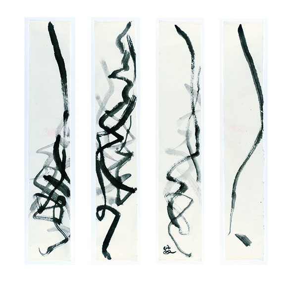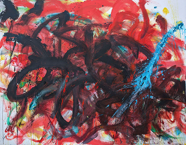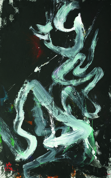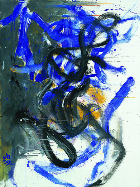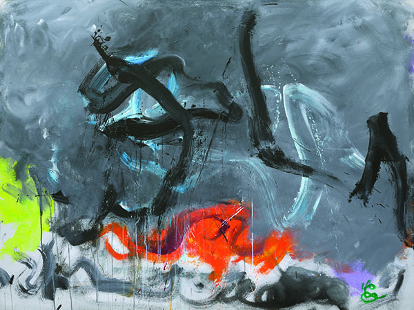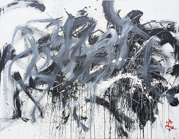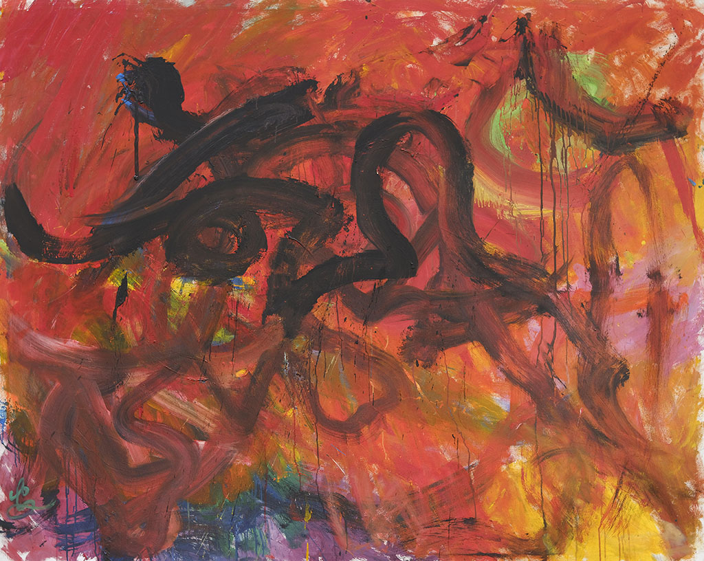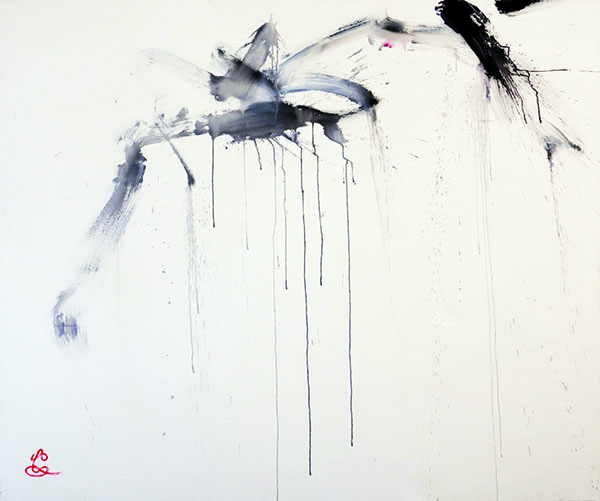 His art is a unique and totally original combination of the freedom of expression and brilliant colours of modern American Abstract Painting with the almost abstract but equally expressive black and white Calligraphy of Ancient China.