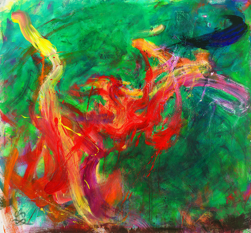 The result is an explosive release of energy, ranging in feeling from gentle mists rising at dawn to the fury at the heart of a storm. A whole world is encompassed here in brush-marks, space and colours.